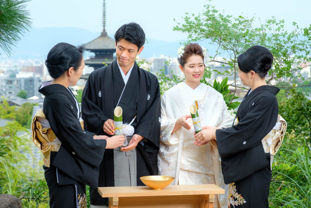 結婚の誓いを立てる大切な儀式です。神社など京大和の外での挙式も、京大和内での挙式もお選びいただけます。